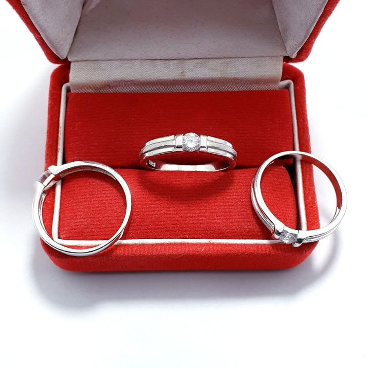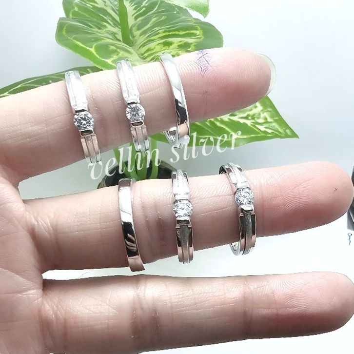 Cincin Pria Atau Cincin Wanita Perak Asli 925 Lapis Emas Putih - Perhiasan Cincin Silver 925