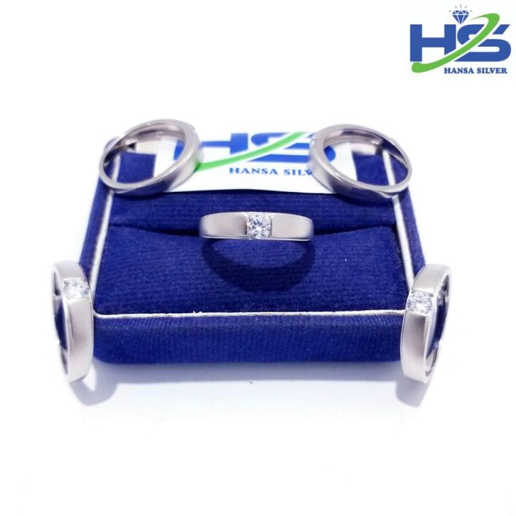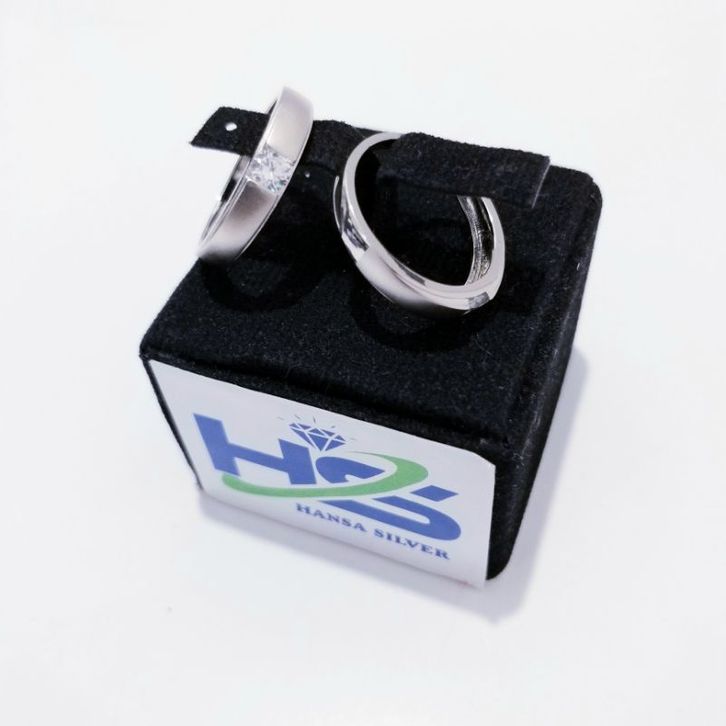 Cincin Model Couple Perak Asli Silver 925 Lapis Emas Putih Ring Doff - Cincin Pria Wanita Anti Karat