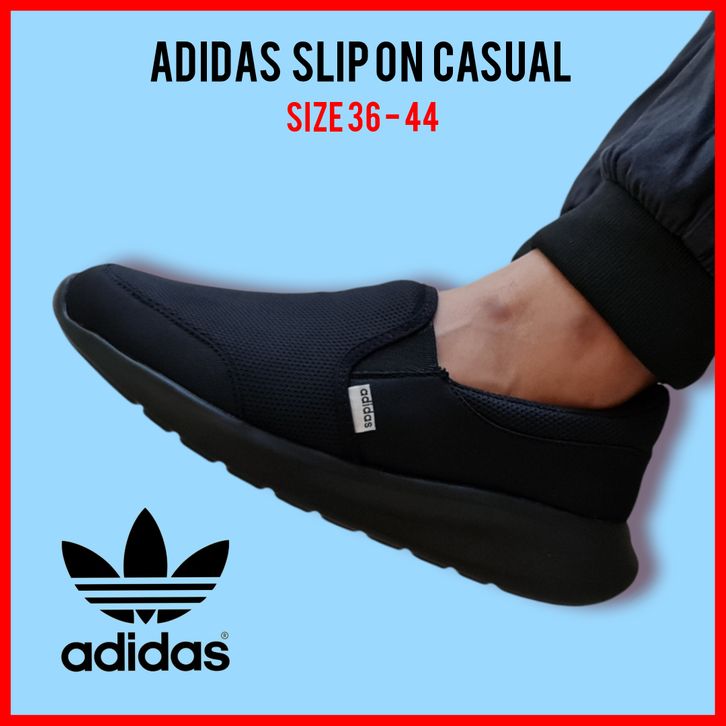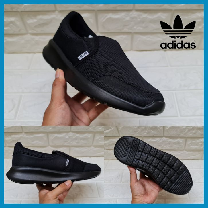 SEPATU ADIDAS_SLIP ON PRIA WANITA / SEPATU KERJA KANTOR COWOK CEWEK CASUAL SANTAI / SEPATU SEKOLAH FULL BLACK HITAM