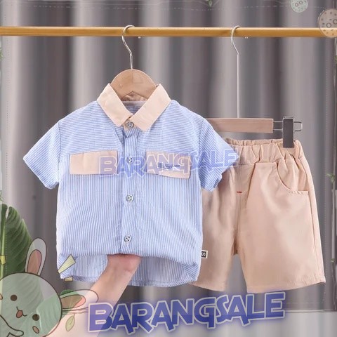 stelan kemeja anak laki-laki kemeja dan celana chino pendek