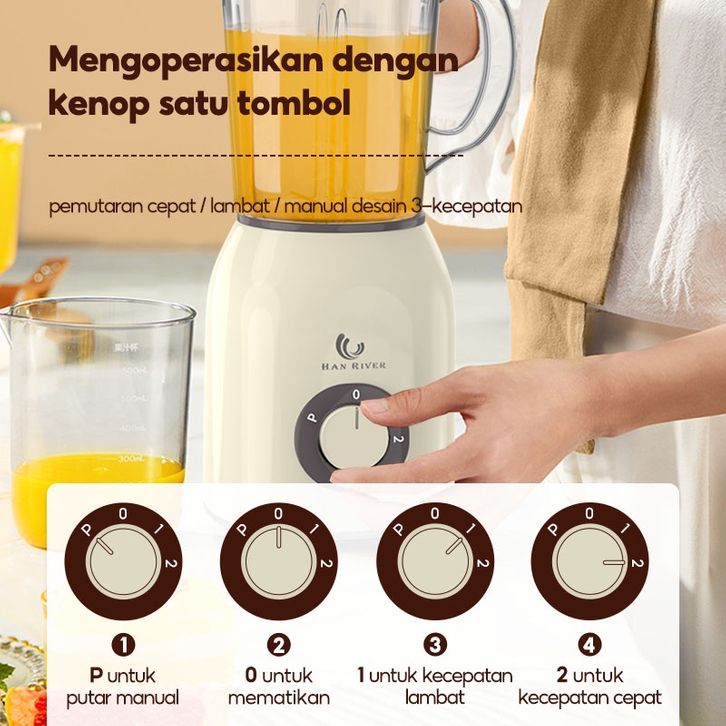 HAN RIVER Blender 1L Juicer Multifungsi Foodgrade 250W Pembuat jus kecil rumah tangga