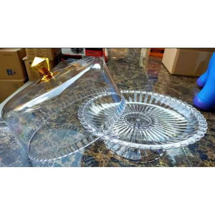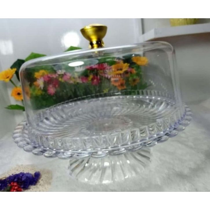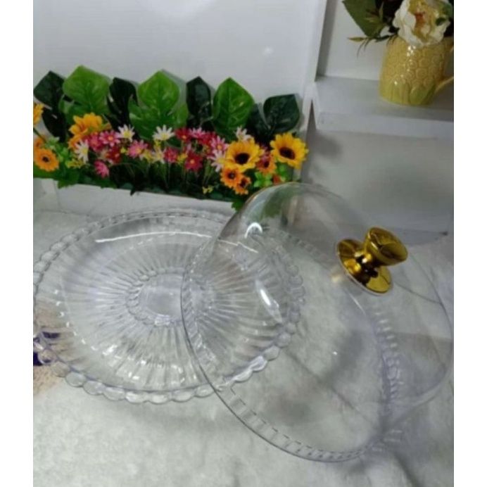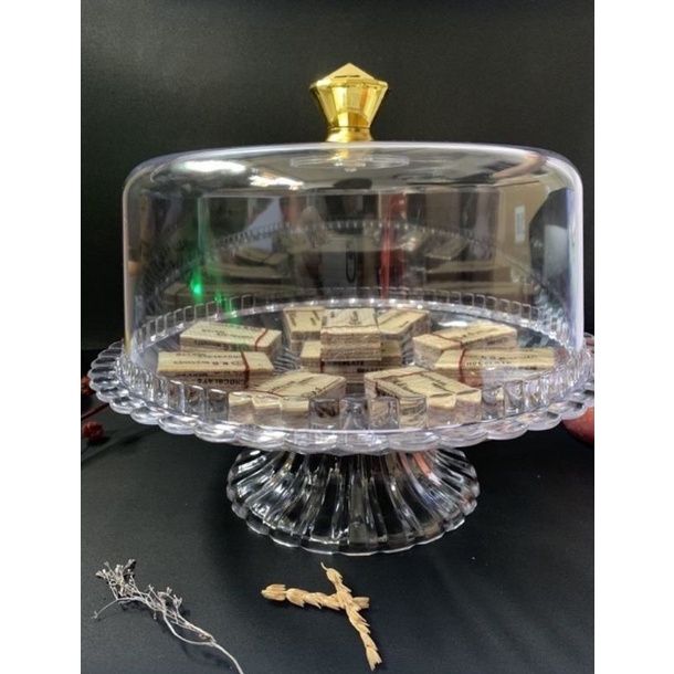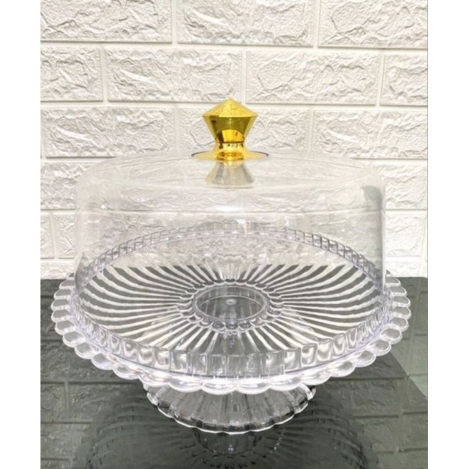 TEMPAT KUE BULAT CANTIQ & ELEGAN GOLDEN LEMON 33CM BAHAN ACRYLIC BERKUALITAS DAN PREMIUM ANTI PECAH