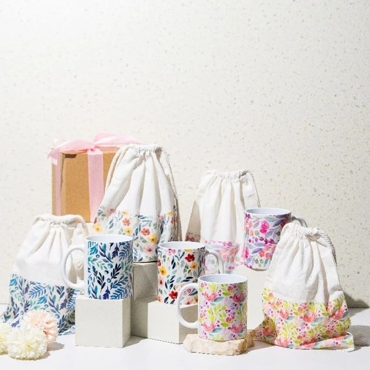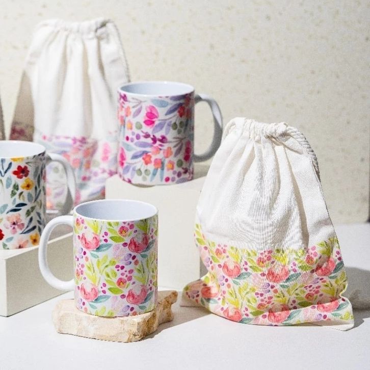 Mug dan Pouch Cantik Aestetik Seruni Living Hampers Kado Pernikahan Souvernir Terbaru Termurah