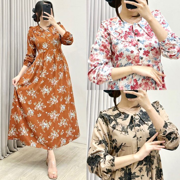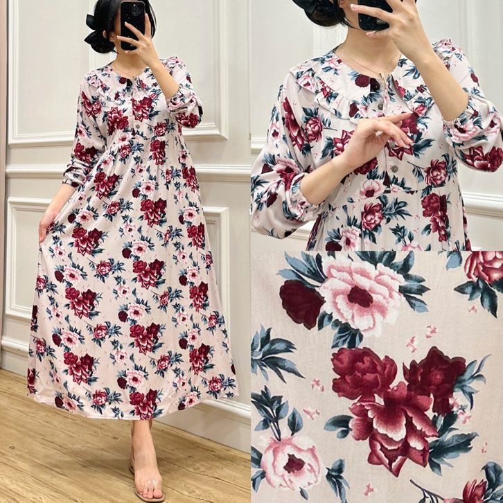 Daster Rossa Pakaian Lengan Panjang Fashion Rumahan Cewek Wanita Bahan Nyaman Kekinian Bumil Busui Friendly Nyaman adem