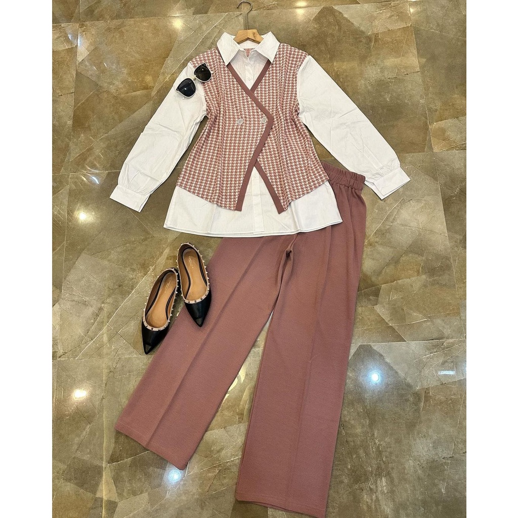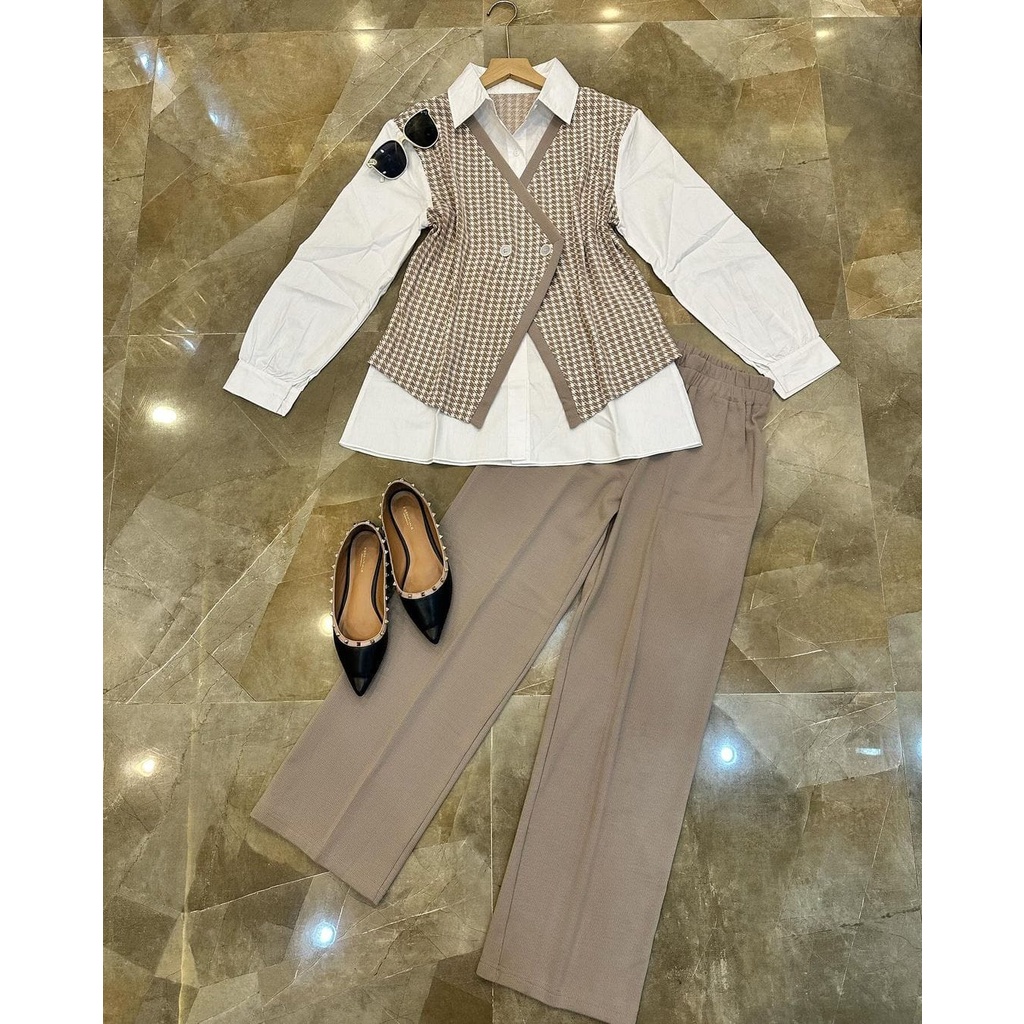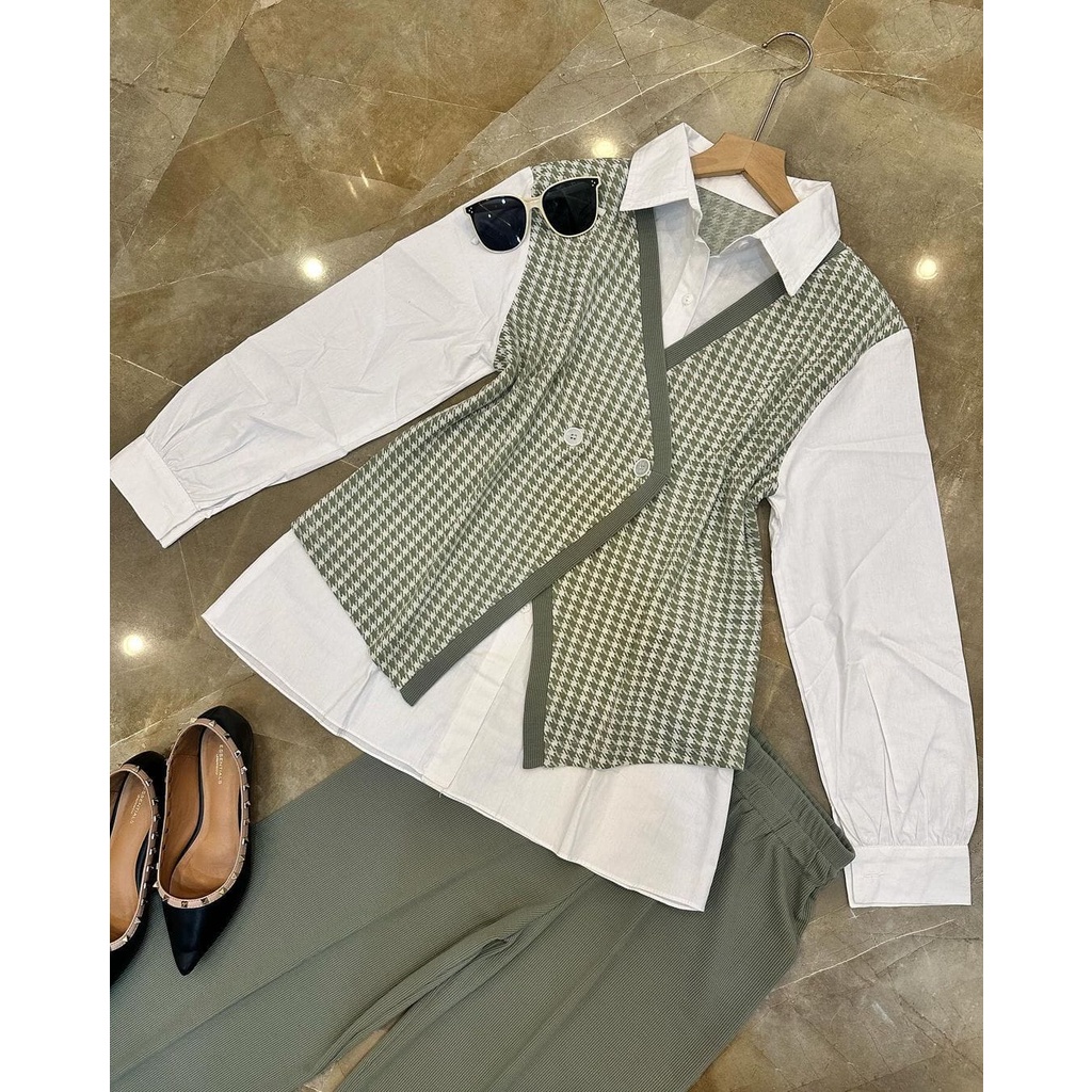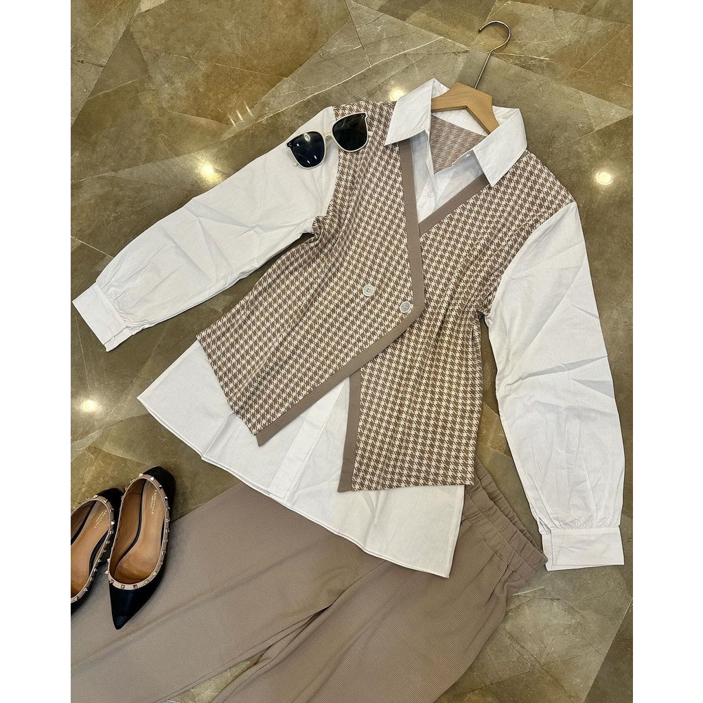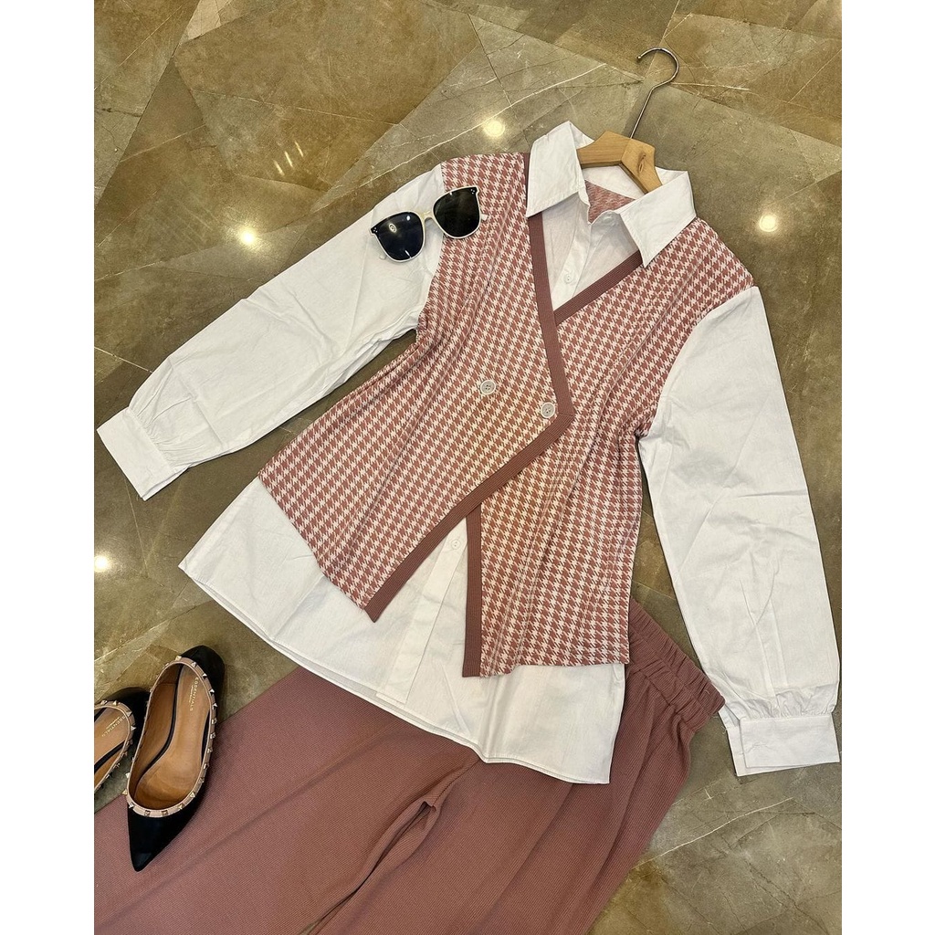 ONE SET SETELAN BESTIE 2IN1 MATT HOUNDSTOOTH KNIT MIX TOYOBO ALL SIZE FIT TO XL BESAR OOTD KOREAN STYLE CASUAL DAILY