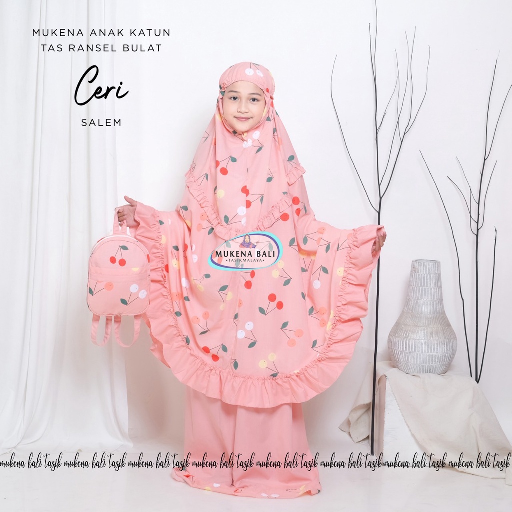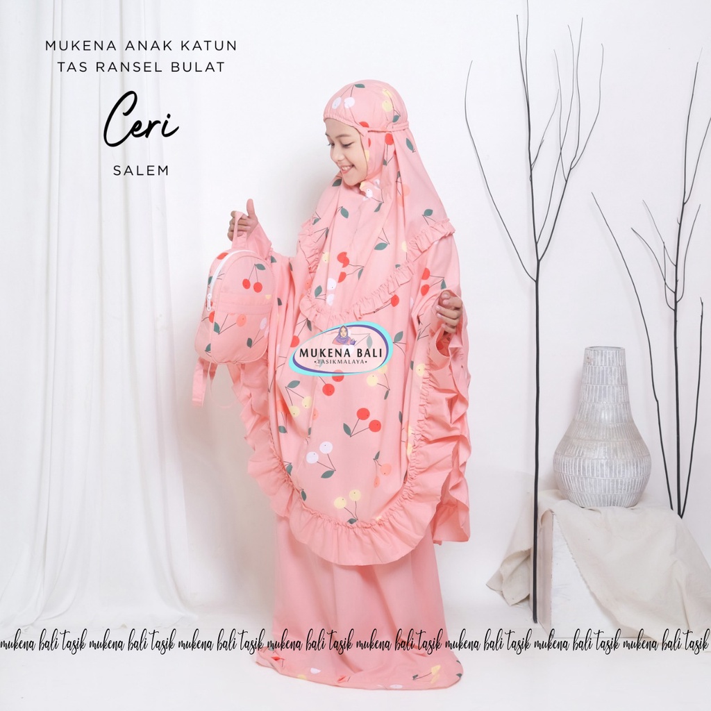 MUKENA BALI TASIK - MUKENA ANAK KATUN MOTIF CERI (TAS BULAT)