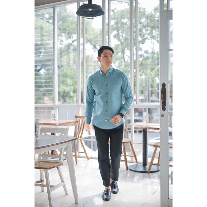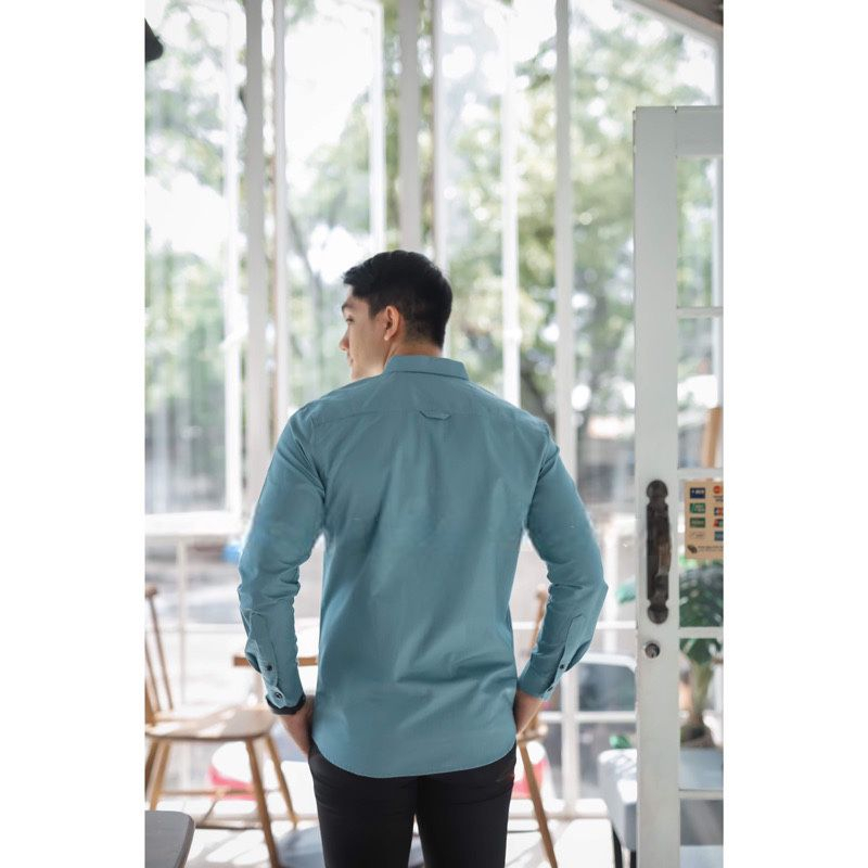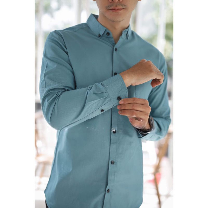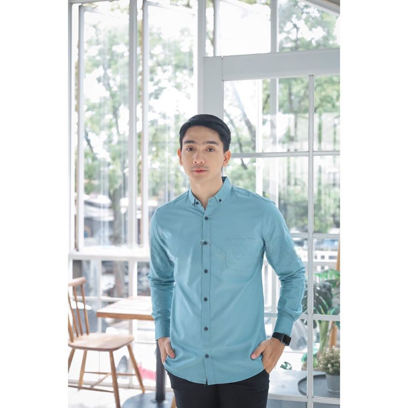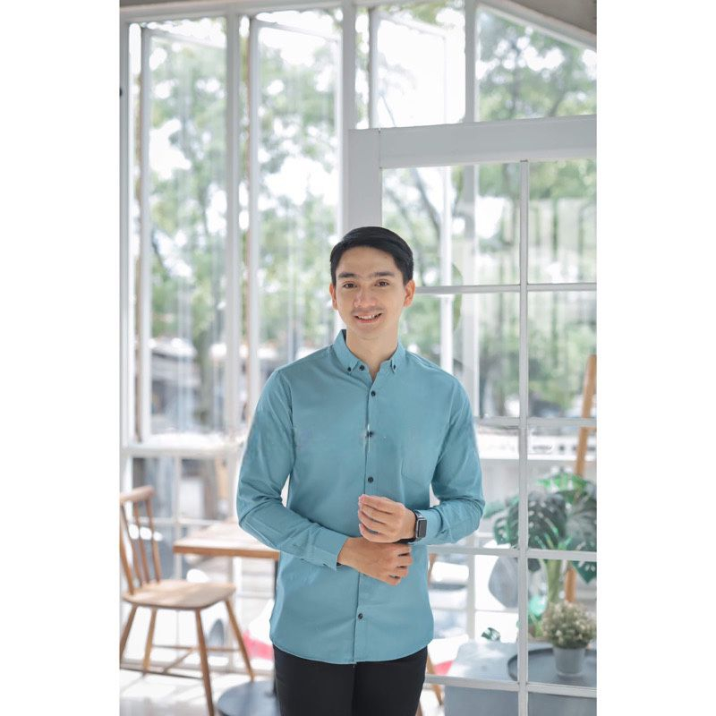 KEMEJA POLOS PRIA LENGAN PANJANG SLIMFIT KASUAL WARNA BIRU WARDAH