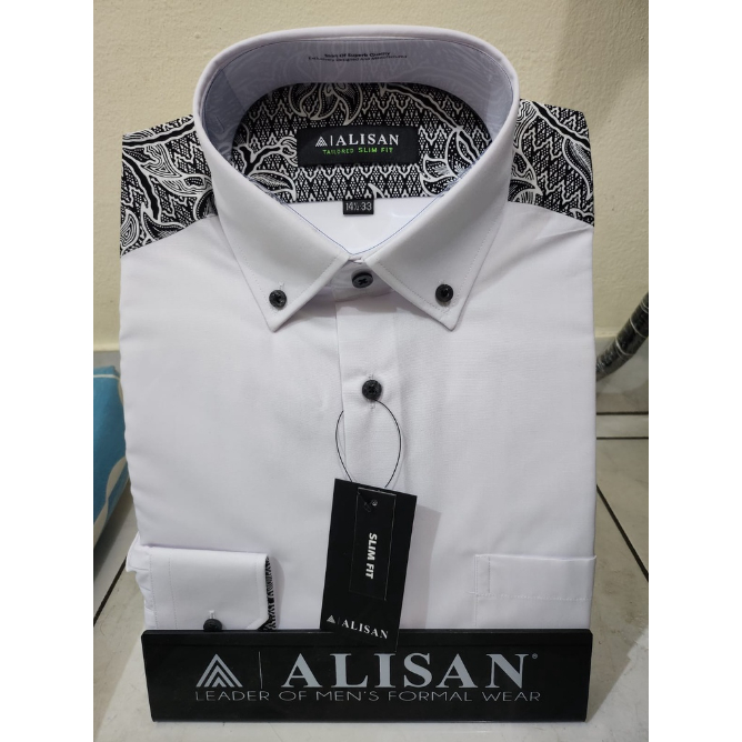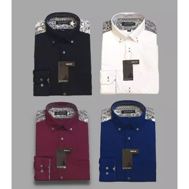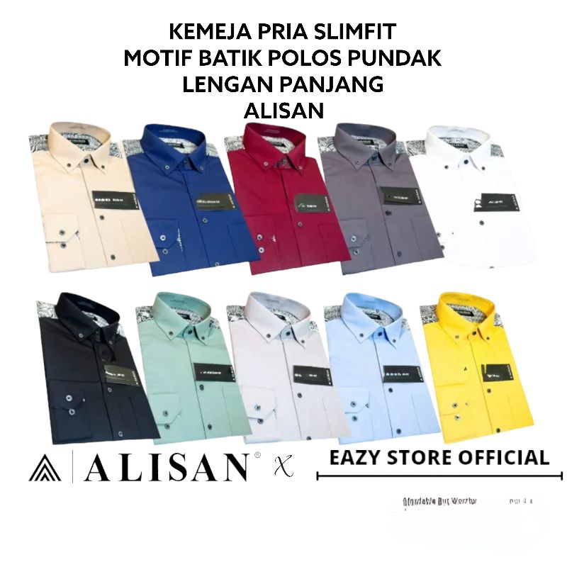 KEMEJA PRIA ALISAN MOTIF POLOS BATIK PUNDAK LENGAN PANJANG SLIMFIT 100 PERSEN ORIGINAL