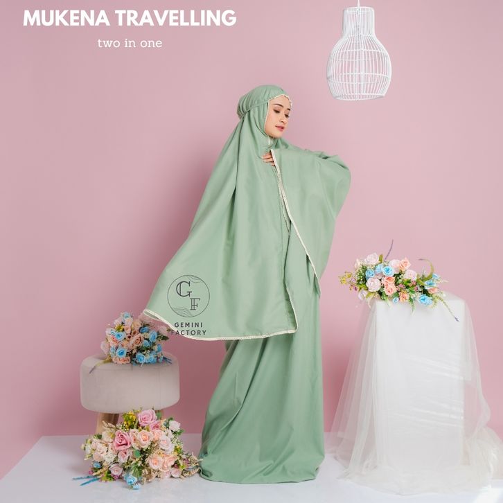 Mukena Travel 2in1 Bahan Mikro Pinggiran Renda Mukena Ponco Dewasa
