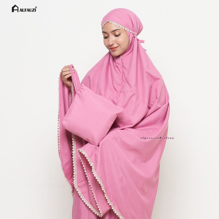 Mukena Zamora Dewasa Jumbo 2in1 Resleting Katun Polos Renda