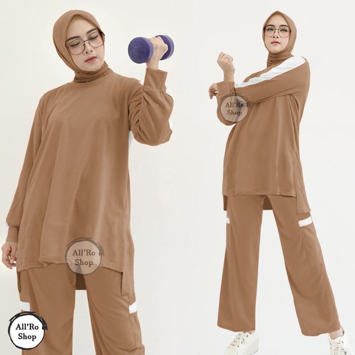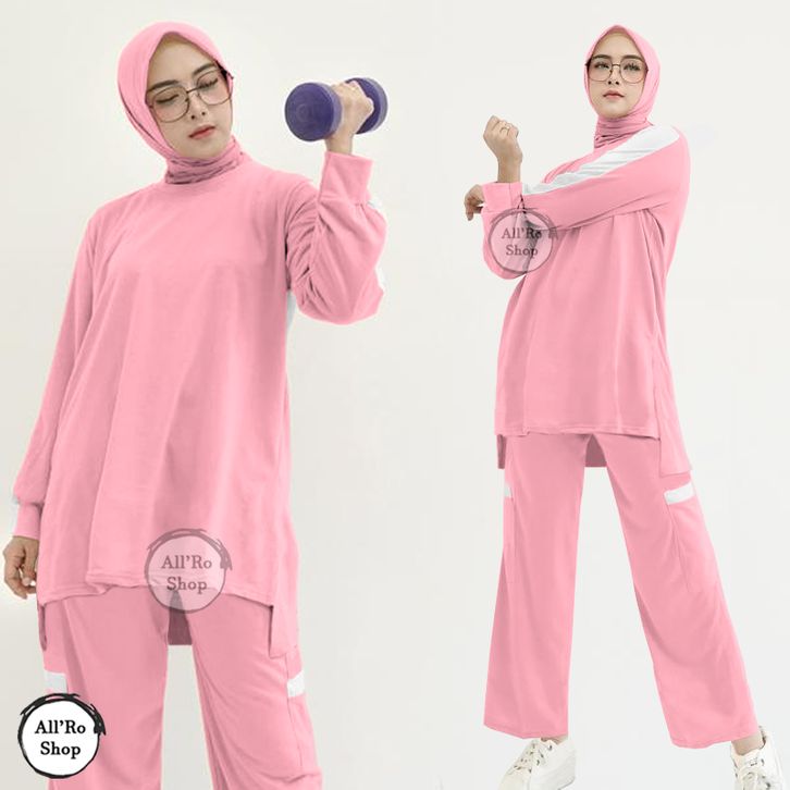 Set Nara - Setelan Olahraga Wanita Muslim Hijab Syari Sopan OneSet Baju dan Celana Senam Model Tunik Lengan dan Celana P