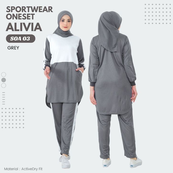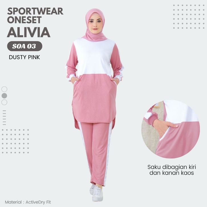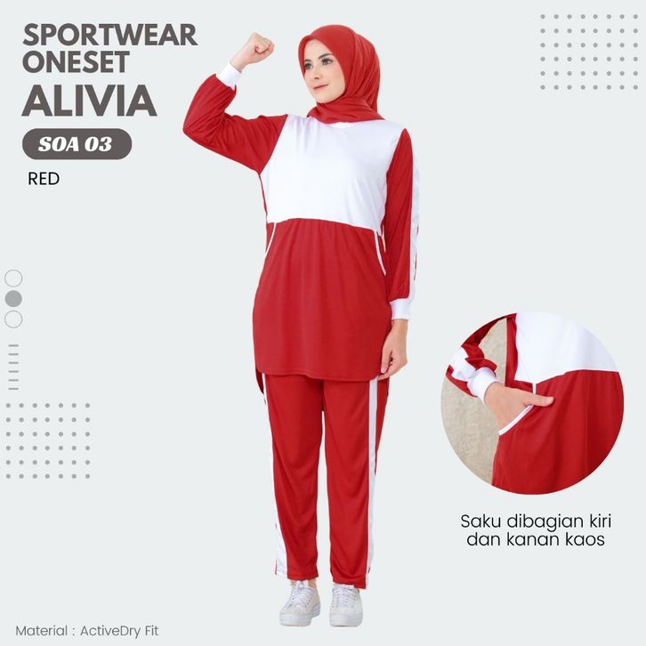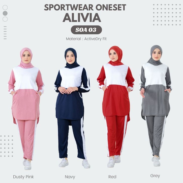 Sportwear Oneset Alivia SOA03 - Setelan Olahraga Wanita - Baju Olahraga Kaos Muslimah - Setelan Senam Sepeda Lari Joggin