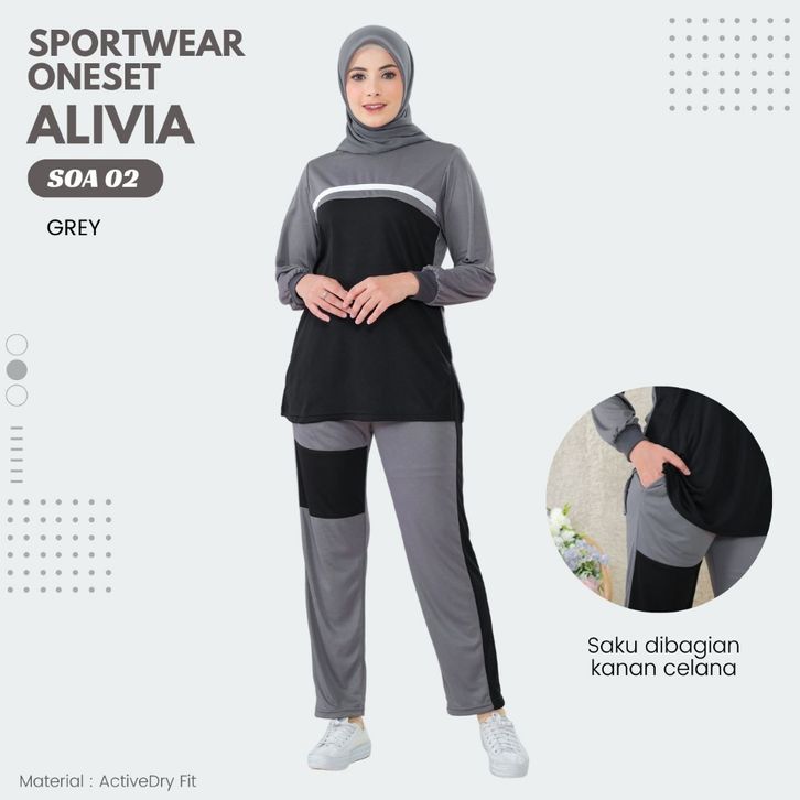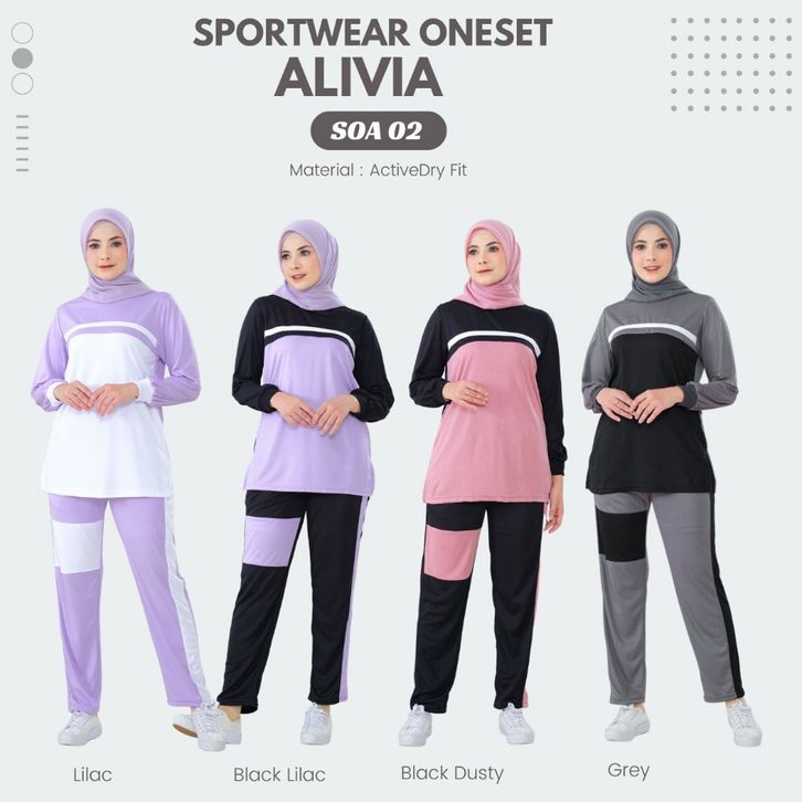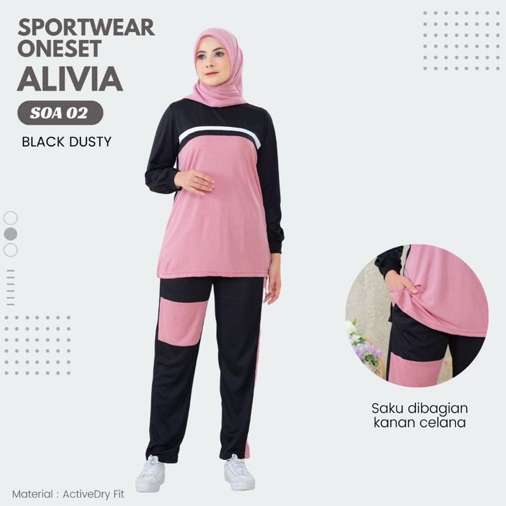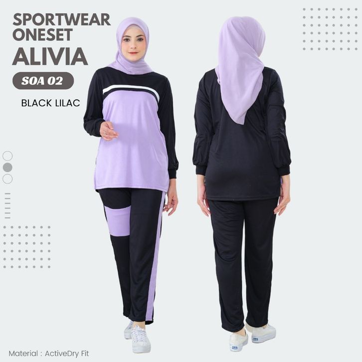 Sportwear Oneset Alivia SOA02 - Setelan Olahraga Wanita - Baju Olahraga Kaos Muslimah - Setelan Senam Sepeda Lari Joggin
