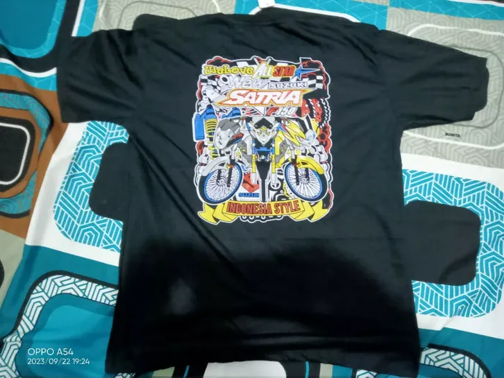 Kaos Cowok Racing Satria FU Atasan Baju Tshirt Distro Kata Kata Sablon Simple Lengan Pendek Hitam Putih Size M L
