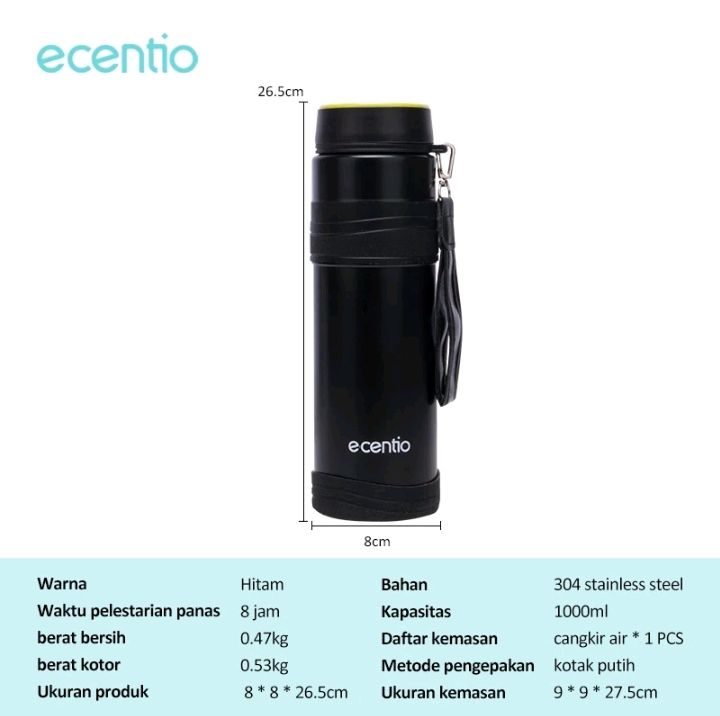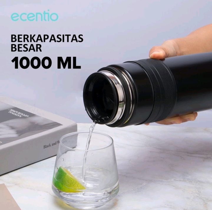 Ecentio Termos Air Panas 1 Liter Stainless Steel 304 Vacuum Flask Botol/Tumbler suhu/ Kapasitas Besar/Gelas air portabel