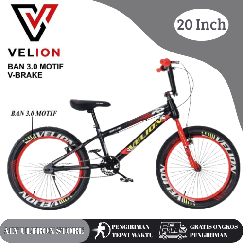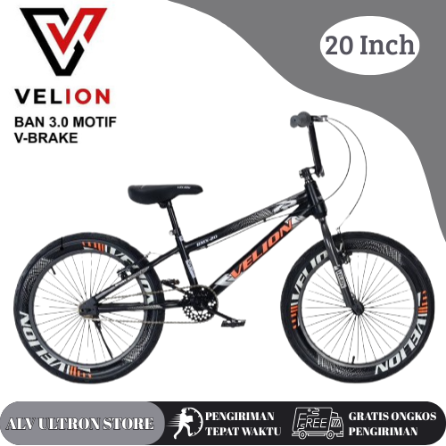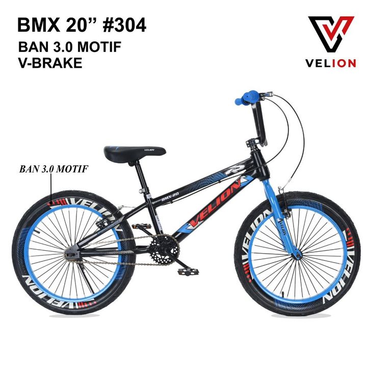 Sepeda BMX 20 Inch Anak Laki Velion 304 Ban 3.0 Motif V-Brake dengan Standar Untuk Anak Usia 5-10 Tahun Murah Tanpa DP