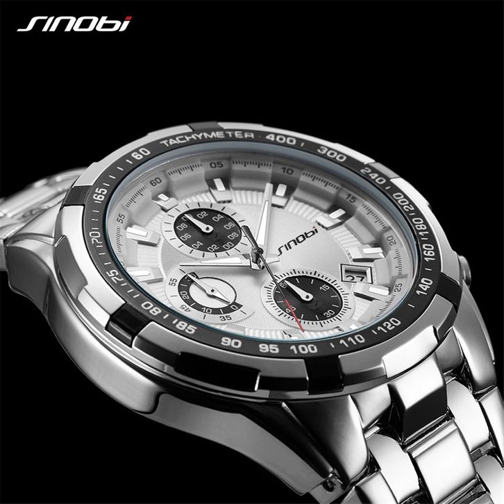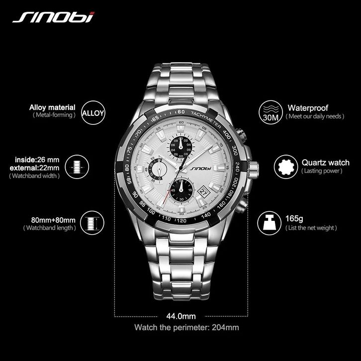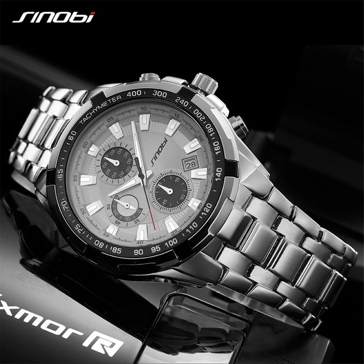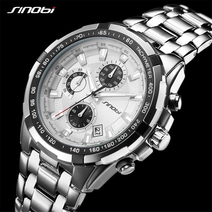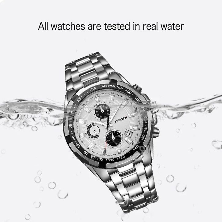 Terlaris !! JAM TANGAN PRIA ORIGINAL BM ANTI AIR ANTI GORES SINOBI 9720 SERIES SILVER BLACK SET BOX DAN CADANGAN BATERAI
