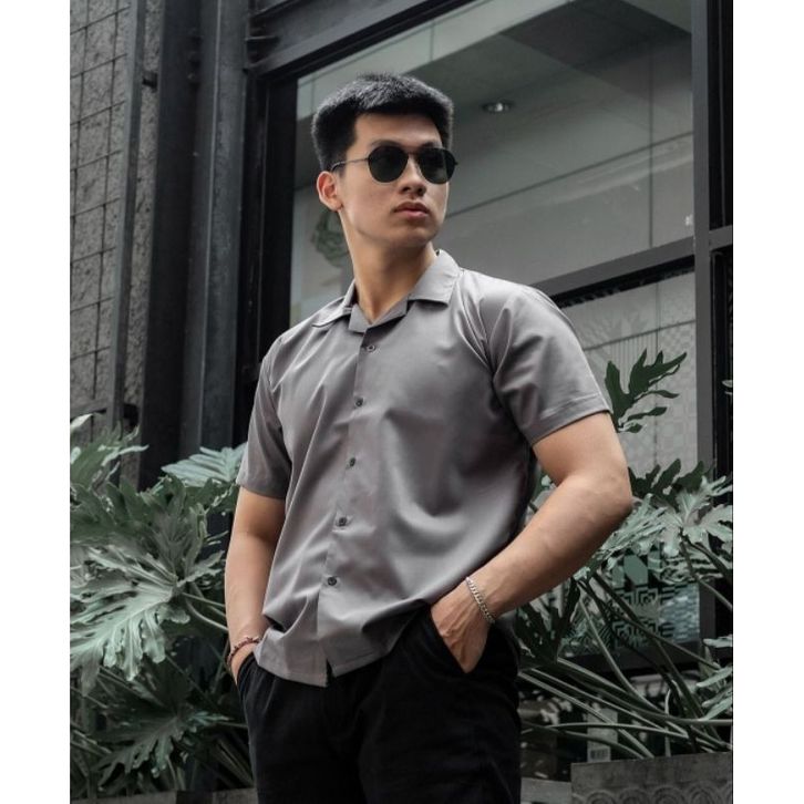 KEMEJA PRIA POLOS KEMEJA HITAM POLOS VINTAGE LENGAN PENDEK KEMEJA PANTAI KEMEJA CASUAL TERBARU 2024 FASHION PRIA KEREN
