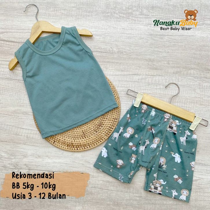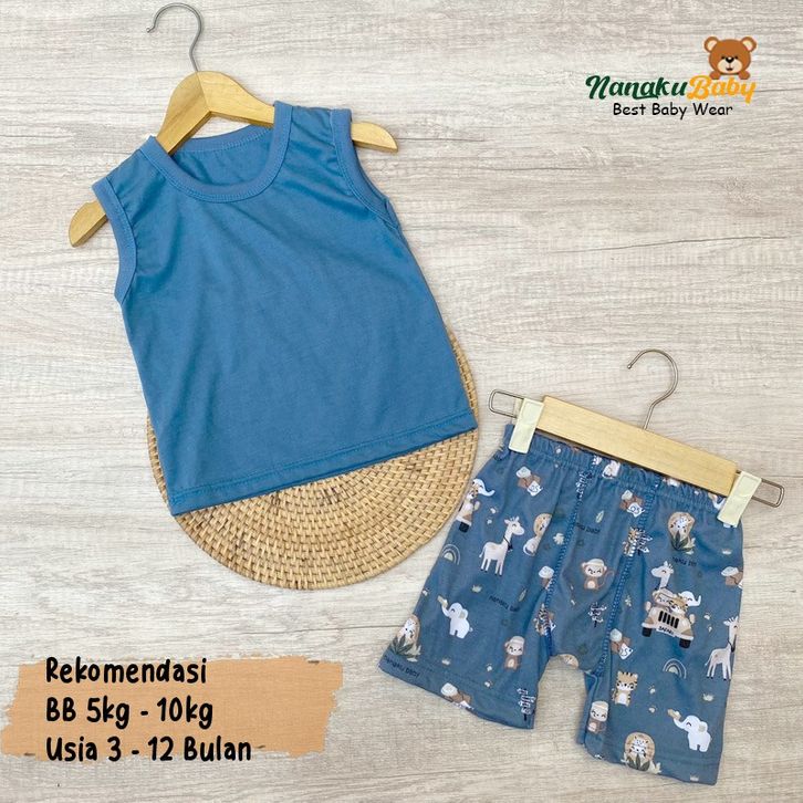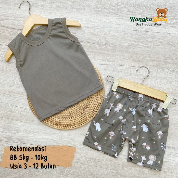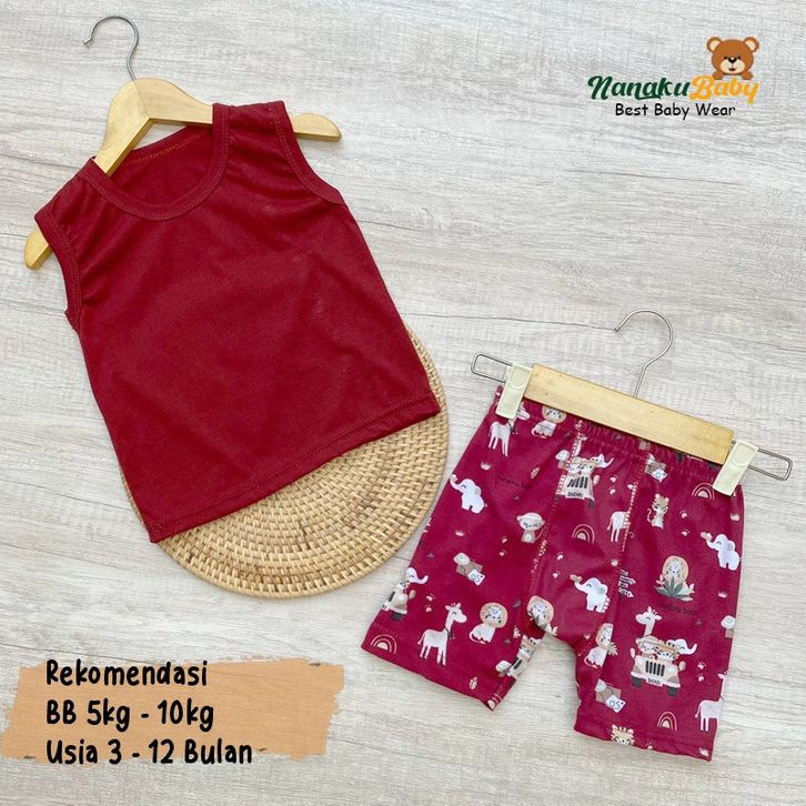 Nanaku Baby - Satu Set Setelan Singlet Anak / Setelan Kengsi Anak Kombi Motif Printing Usia 3-12 Bulan