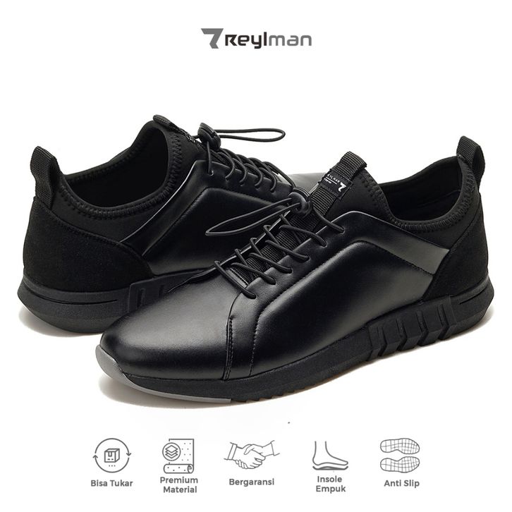 SEPATU SNEAKER PRIA REYLMAN FLEXI BLACK SEPATU CASUAL PRIA WARNA HITAM KEREN NYAMAN