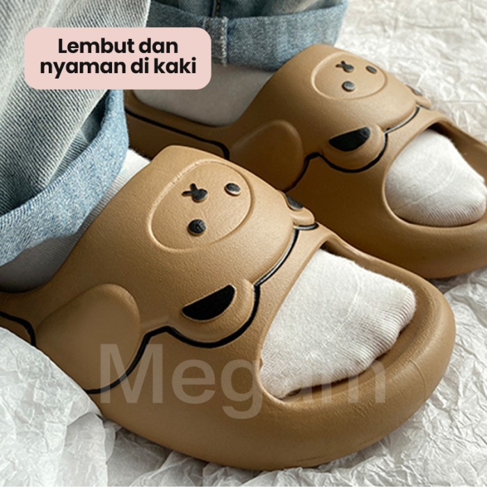 SENDAL RUMAH SLIP ON KOREA SOFT RUBBER SANDAL WANITA HSN157 - 157 KHAKI, 36-37