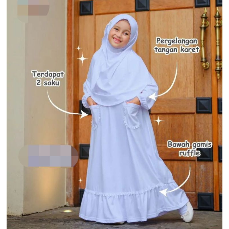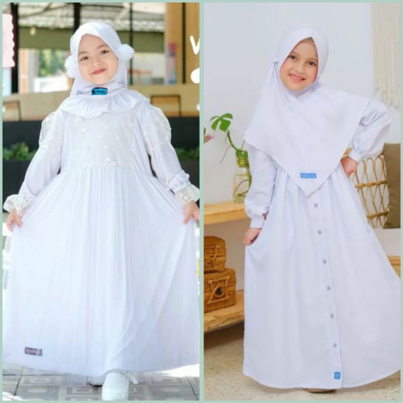 SET GAMIS ANAK PUTIH GAMIS ANAK PEREMPUAN PUTIH MANASIK HAJI ANAK TK 2024