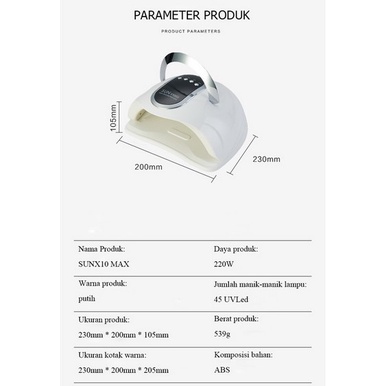 Sun X10 Max Pengering Kuku 220W Pengering Kutek 45 Lampu Led Uv Mesin Fototerapi Kuku Gel Mini Nail Dryer