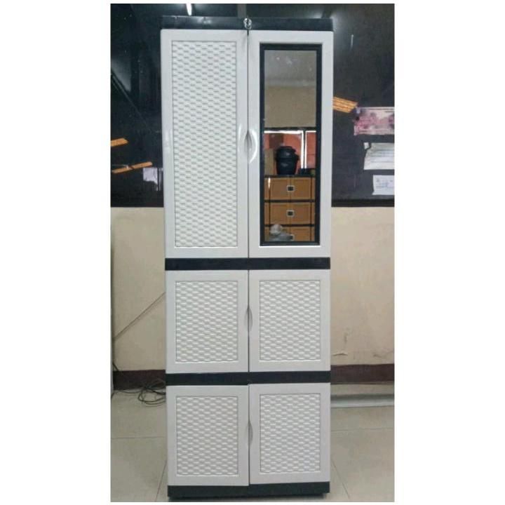 Gratis ongkir - Lemari pakaian - Lemari baju susun - Lemari Plastik Susun 4 Kaca Putih HK Pintu Panjang
