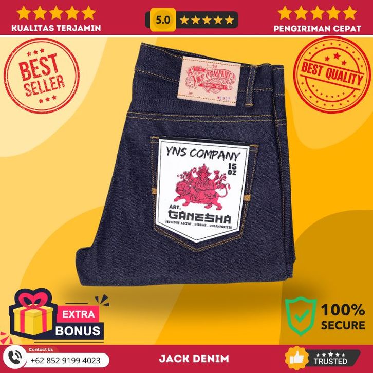 YNS COMPANY - GANESHA - CELANA JEANS PRIA SELVADGE ACCENT 14 OZ BLACK INDIGO