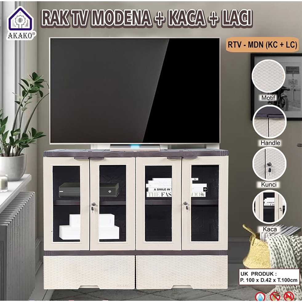 MURAH RAK TV MODENA AKAKO RAK BUFFET KACA MEJA TV BAGUS KUAT FULL KUNCI
