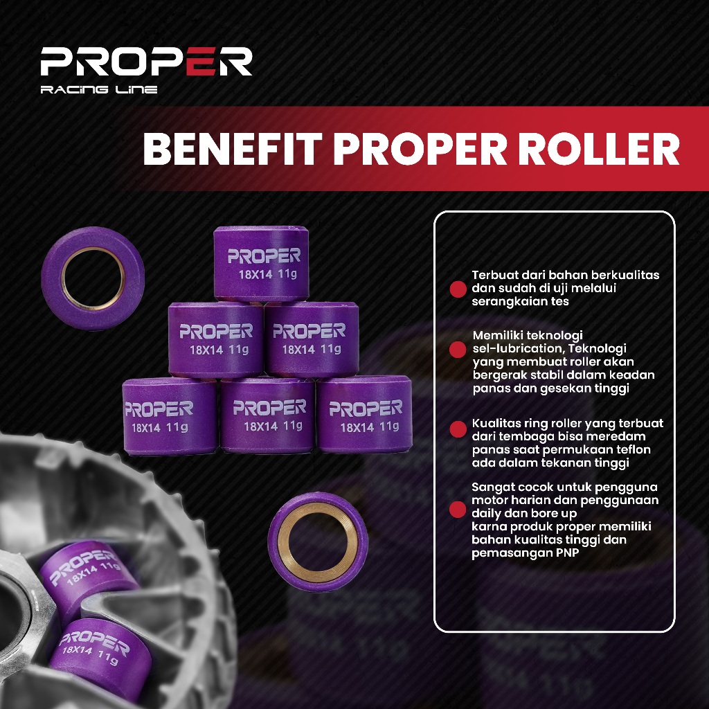 ROLLER PROPER RACING LINE VARIO 125 150 PCX 160 BEAT DELUXE SCOOPY FI 8 13 14 15 GRAM UPGRADE TENAGA CVT VANBELT ROLER