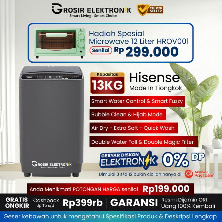 GRATIS ONGKIR - HISENSE Mesin Cuci Jumbo 13KG [ WTJA-31TD 8KG - 13KG ] - mesin cuci 1 tabung 8kg - STGE - TL1