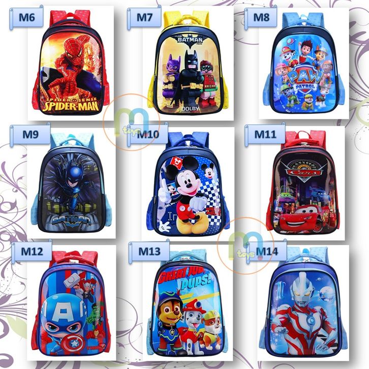 Tas Ransel Sekolah TK / SD Anak Backpack tas tipe 2 Ruang motif cowok / Boy karakter superheroes