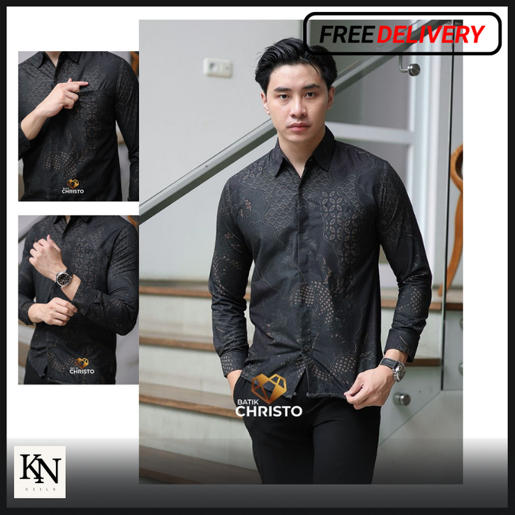 Kemeja Batik Pria Baju Lengan Panjang Slimfit Lapis Furing Batik Christo 1074 Bahan Katun Premium Elegan Motif Formal Wa
