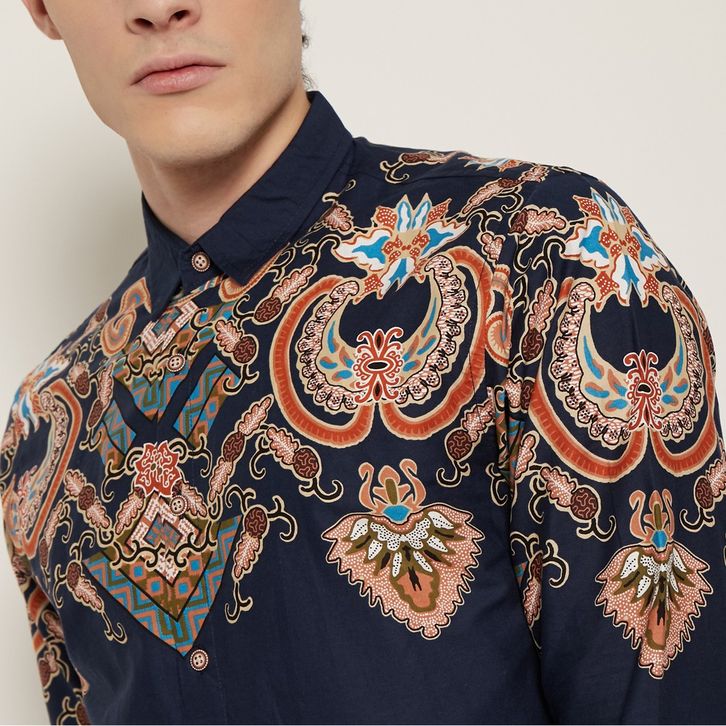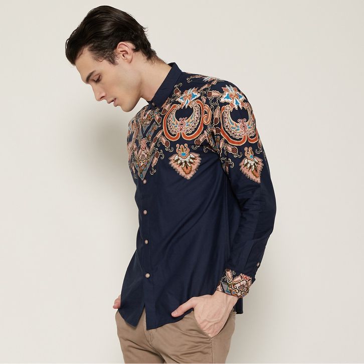 M231 Kemeja Pria Batik Panjang Navy 1699B