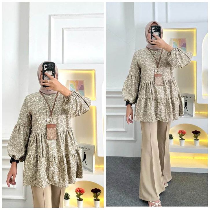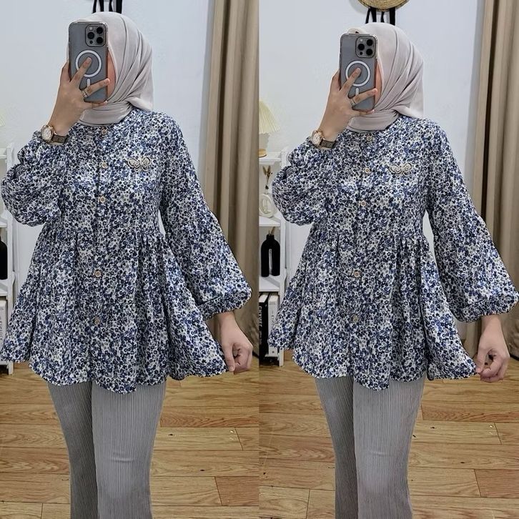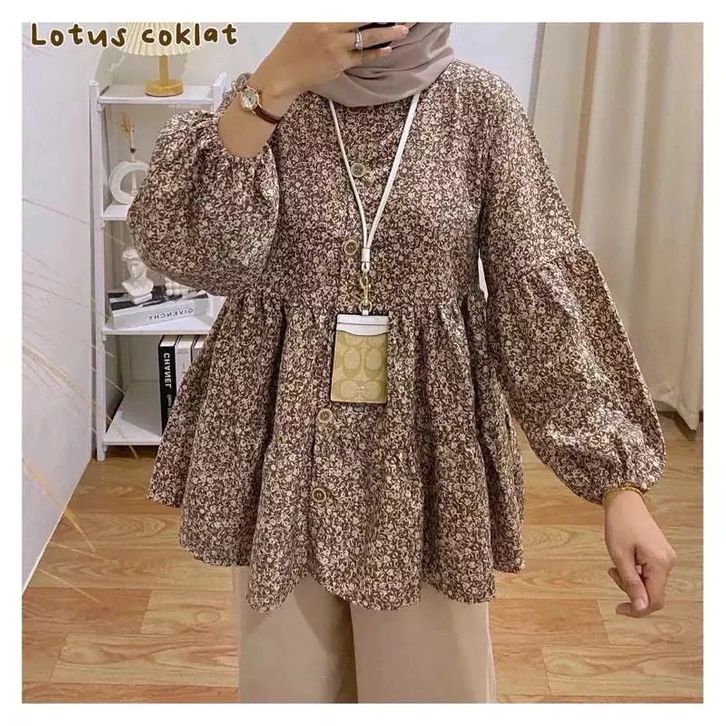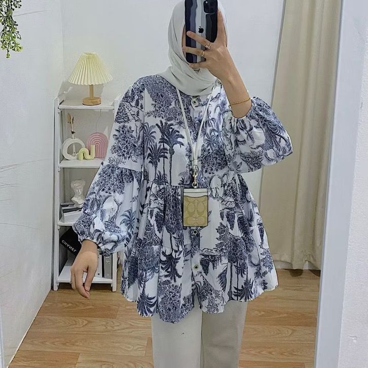 Blouse Wanita Aida Floral Babydoll LD 100 Katun Motif All Size Fit L