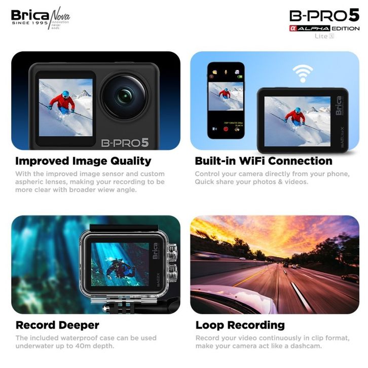 Brica B-Pro 5 Alpha Edition AE LiteX Action Cam Full HD - Bpro 5 AE Lite X Black Original Resmi