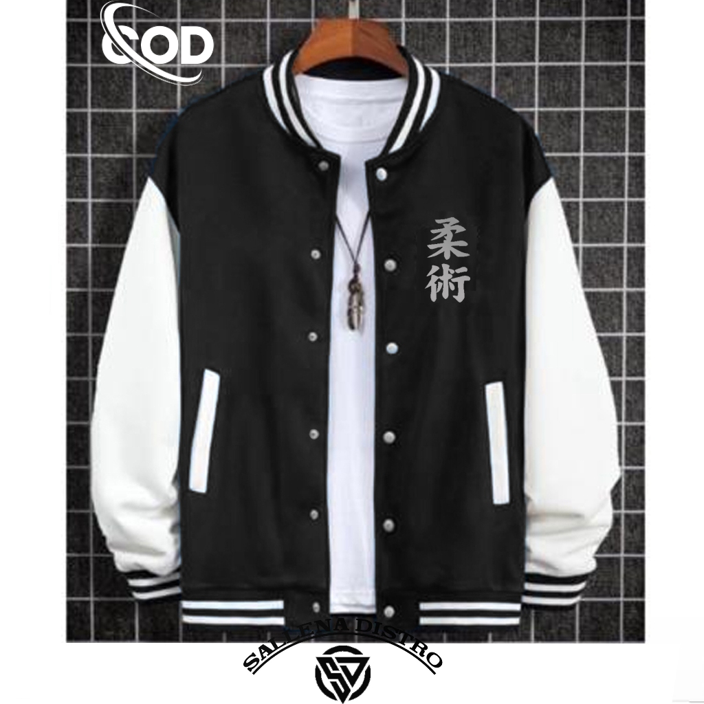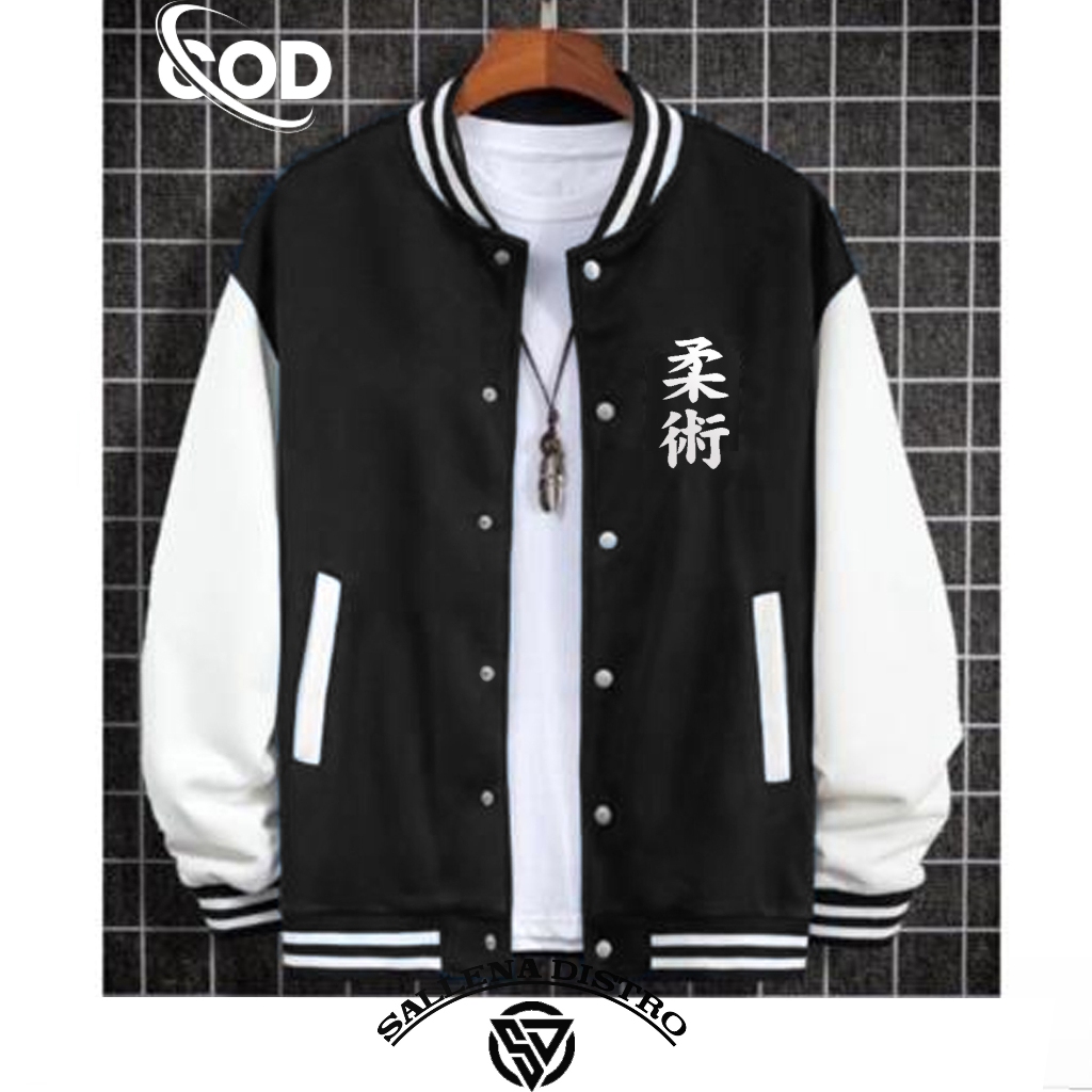 JAKET BASEBALL KANCING JAKET VARSITY BASEBALL LOGO KATA JAPANG01 QUALITY SILVER READY BANYAK WARNA JAKET BASEBALL POLOS