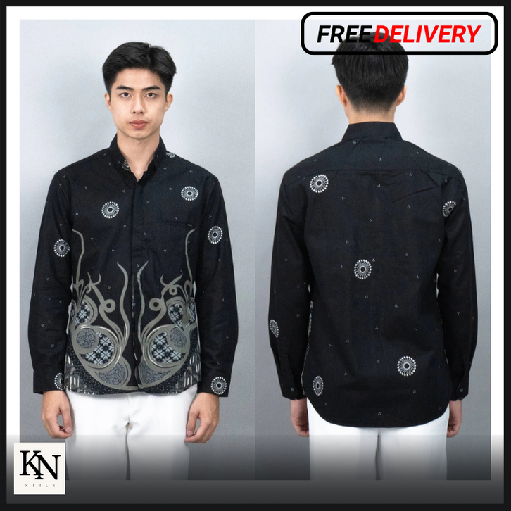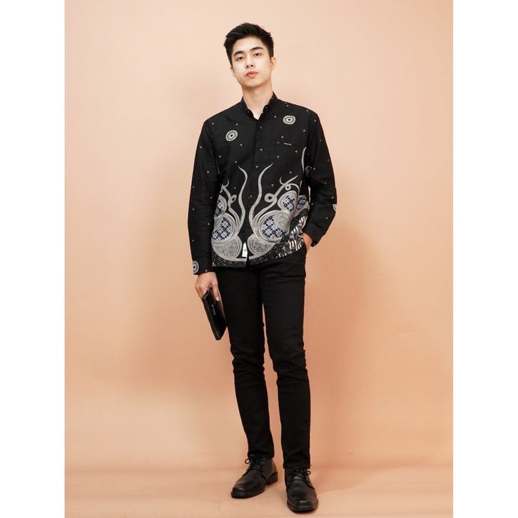 Kemeja Batik Pria Modern Jumbo Lengan Panjang Night