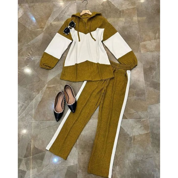 One set Hanika Set Hoodie Wanita Trending Atasan Celana Mat Knit Ukuran Jumbo Ootd Stylish Kekinian Cewek Perempuan