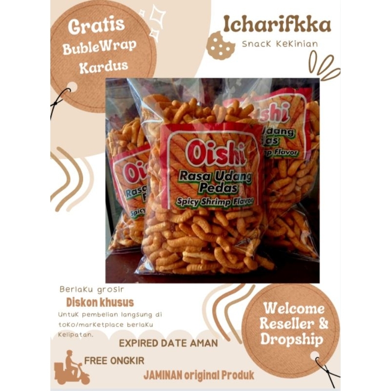 OISHI UDANG PEDAS. SNACK KILOAN ORIGINAL SIAP KIRIM EXPIRED PANJANG