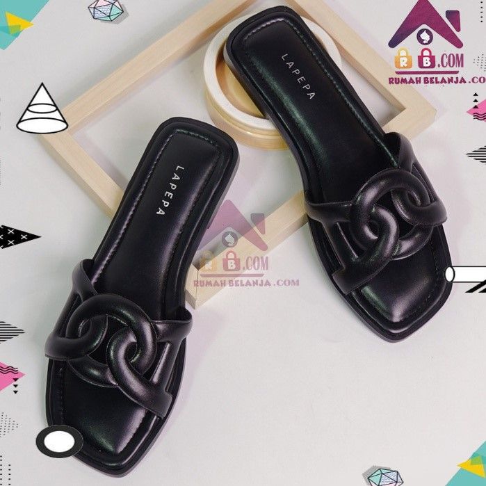 Sandal Wanita Teplek Korea Casual Size 36 - 40 Sendal Slop Empuk Flat Cewek Kasual Rumahan Warna Hitam