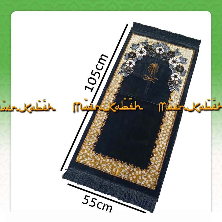 Sajadah Hitam Premium Kiswah Bulu Halus Lembut Ukuran Besar Jumbo Dan Ukuran Sedang/Sejadah Turki Bulu Hitam Free Ongkir