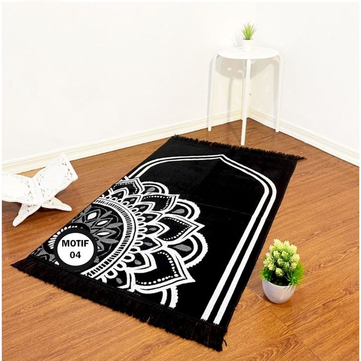 Sajadah Turki Tebal Hitam Motif Bunga Ukuran 110x70cm Murah by Rebusa Muslim Store Free Ongkir