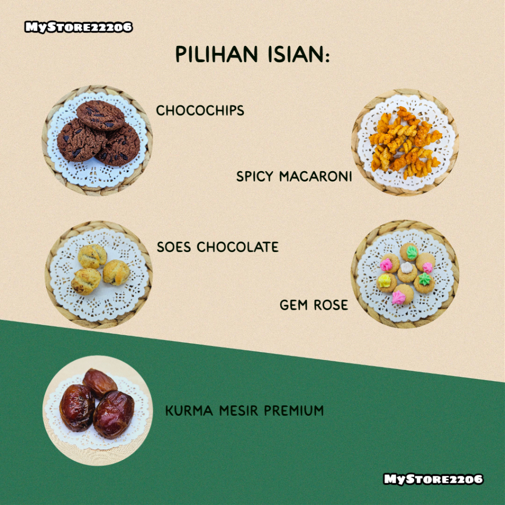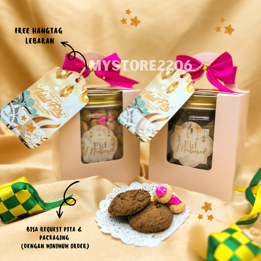 (1 JAR) HAMPERS PARCEL LEBARAN IDUL FITRI 2024 COOKIES KUE KERING CHOCO CHIPS GEM ROSE DAN BUAH KURMA 1 JAR 600ML