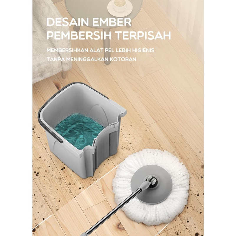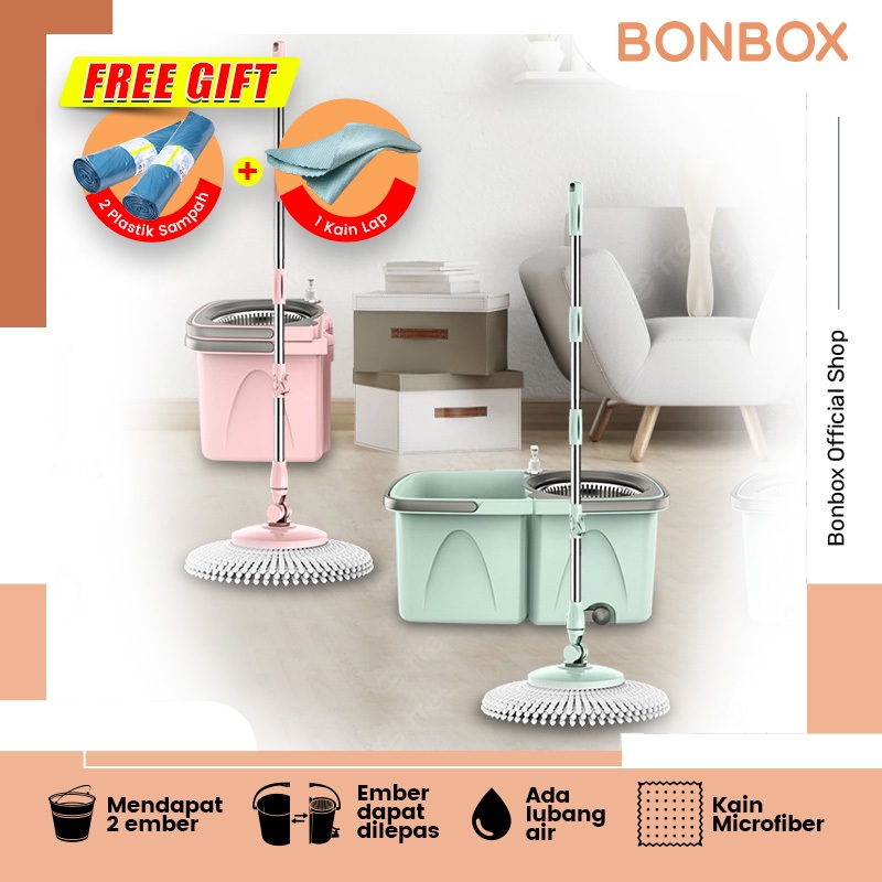 BONBOX Alat Pel Lantai 2 in 1 Ember Terpisah Dapat 2 Kain Pel Lantai Ember Terpisah Mop Kain Fiber dengan Spin Mop Ember