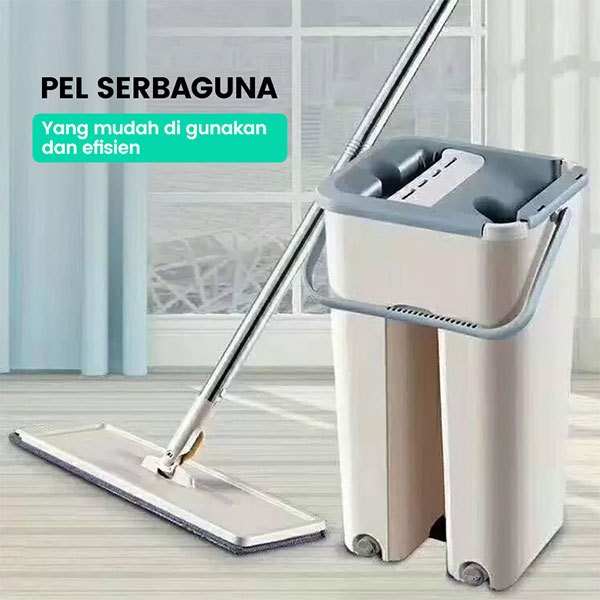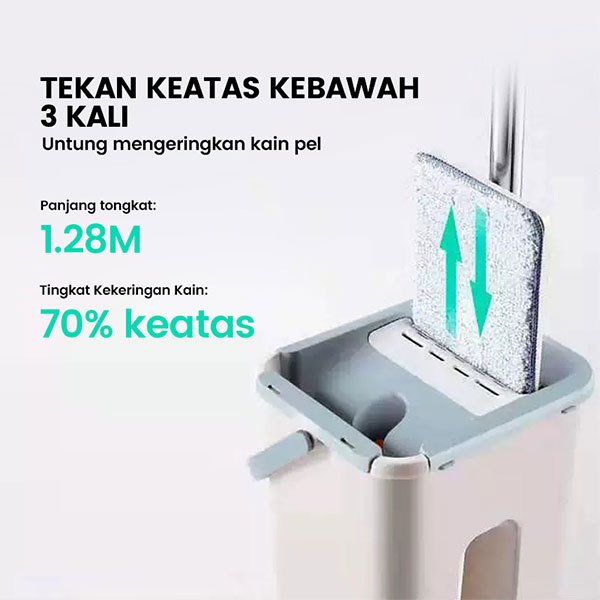 Alat Pel Set FREE REFILL PEL Pembersih Lantai Magic Mop Flat With Bucket Alat Pembersih Tanpa Bilas Tangan Alat Pel Lant