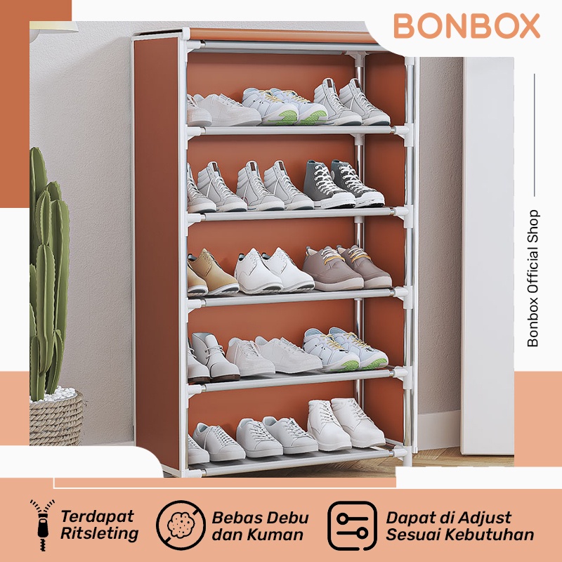 BONBOX Rak Sepatu 5 Layer Tebal Shoe Rack Portable Serbaguna Muat 15 Pasang Penutup Rapat Kuat Tebal Serbaguna BFS221101