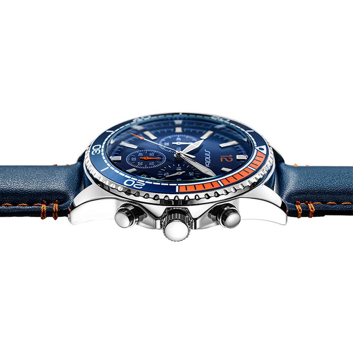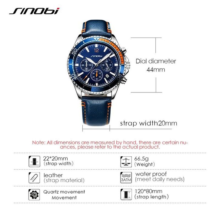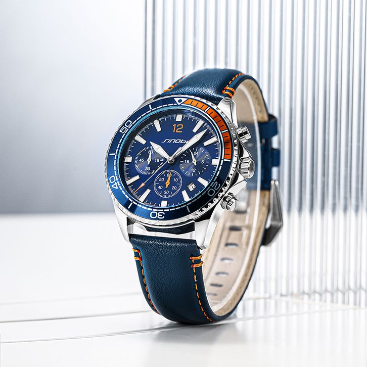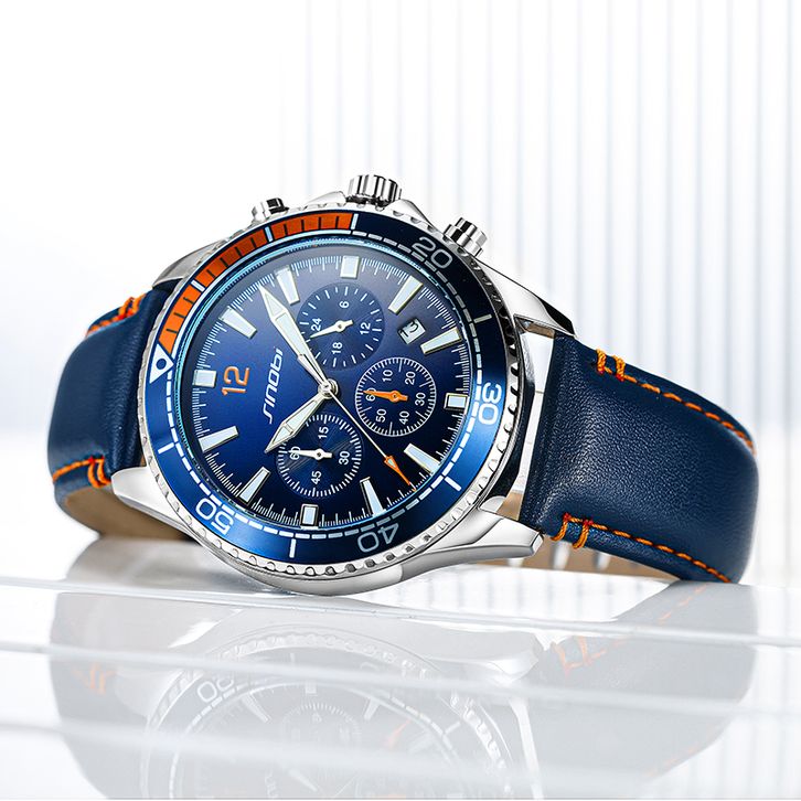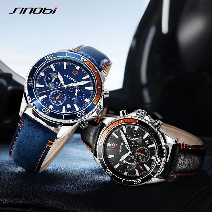 Jam Tangan Pria SINOBI Series S9866G desain baru asli, kuarsa, kronograf, tali kulit, bercahaya
