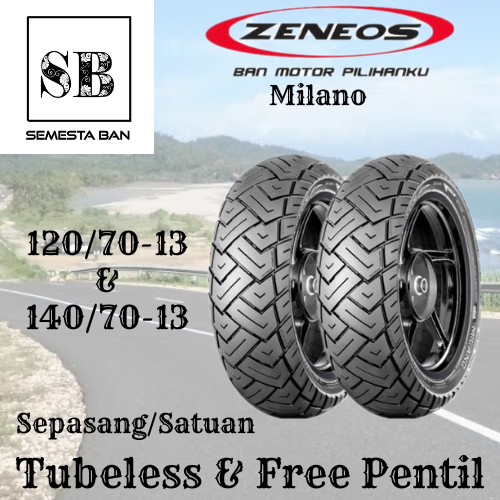 Sepasang/Depan/Belakang Ban Motor Nmax Zeneos Milano Ring 13 (110/70 120/70 130/70 140/70 150/70)-13 OLD/NEW Tubeless